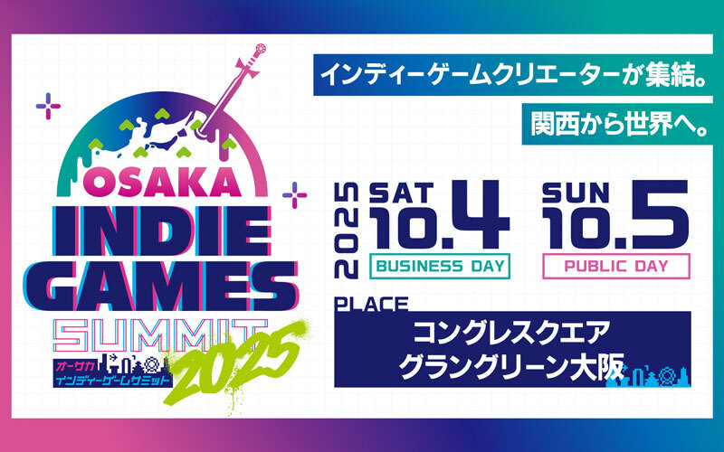2025年10月4日(土) / 10月5日(日)。コングレスクエア グラングリーン大阪でOSAKA INDIE GAMES SUMMIT 2025(OIG 2025)が開催。インディーゲームを中心とした様々なクリエイターの才能が一堂に会す“...